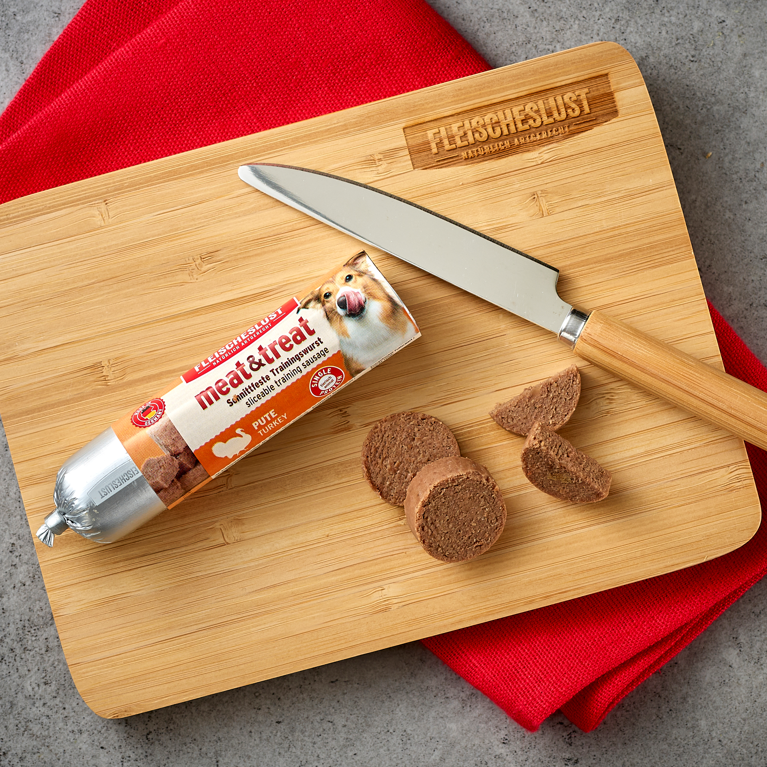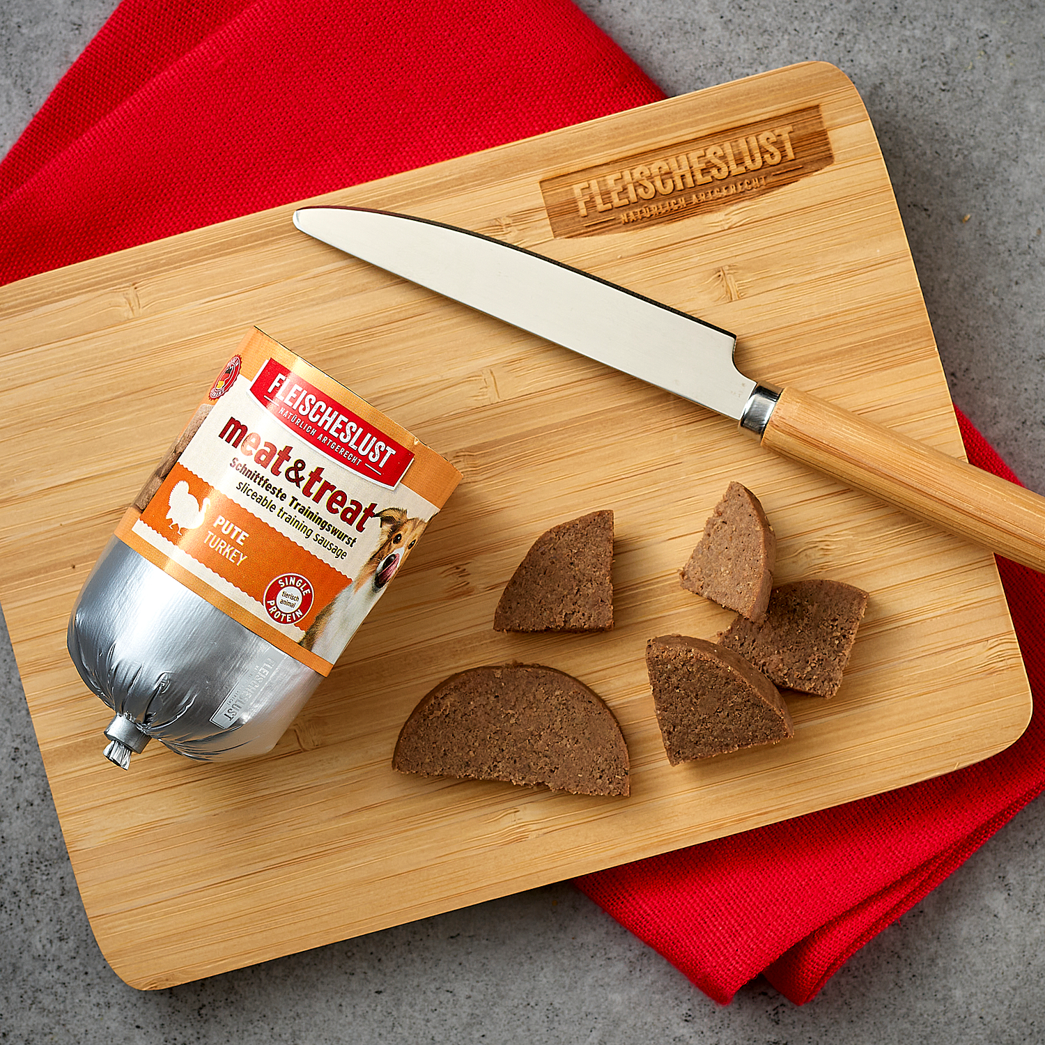Unsere meat & treat Trainingswürstchen sind individuell einsetzbar: ideal zum Training, aber auch als Belohnung zwischendurch. Durch die individuelle Portionierung entscheidest du, wie viel Wurst deine Fellnase erhält. Zum Training empfehlen wir kleinere Portionen, die mit einem Haps im Mund verschwinden. Zur Belohnung darf es etwas größer sein