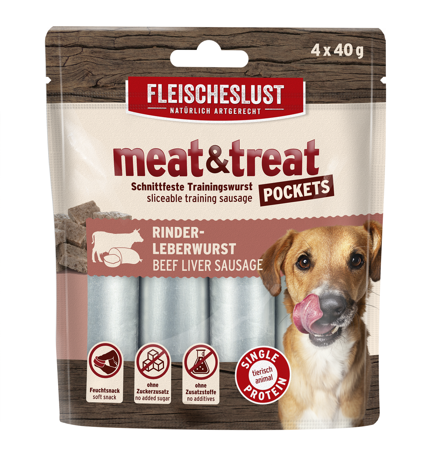 Unsere meat & treat Trainingswürstchen sind individuell einsetzbar: ideal zum Training, aber auch als Belohnung zwischendurch. Durch die individuelle Portionierung entscheidest du, wie viel Wurst deine Fellnase erhält. Zum Training empfehlen wir kleinere Portionen, die mit einem Haps im Mund verschwinden. Zur Belohnung darf es etwas größer sein.