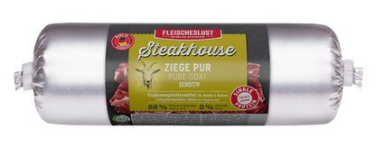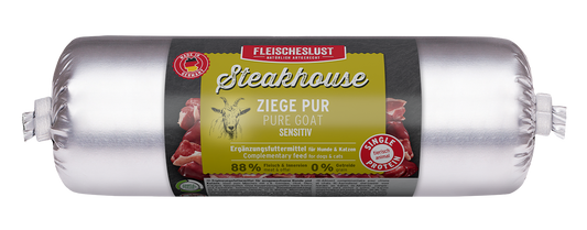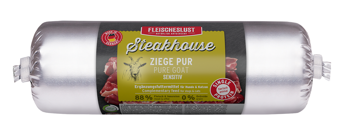 Deine Fellnase hat den Sonntagsbraten aus dem Ofen geklaut? Sie bekommt trotzdem das beste Futter: Mit unseren sensitiven Produkten von Steakhouse! Getreidefrei, ohne Schnickschnack, ideal für ernährungssensible Fellnasen mit Unverträglichkeiten – der bequeme Nass-Barf-Ersatz aus einer hochwertigen tierischen Proteinquelle. So isst halt ein Tier.